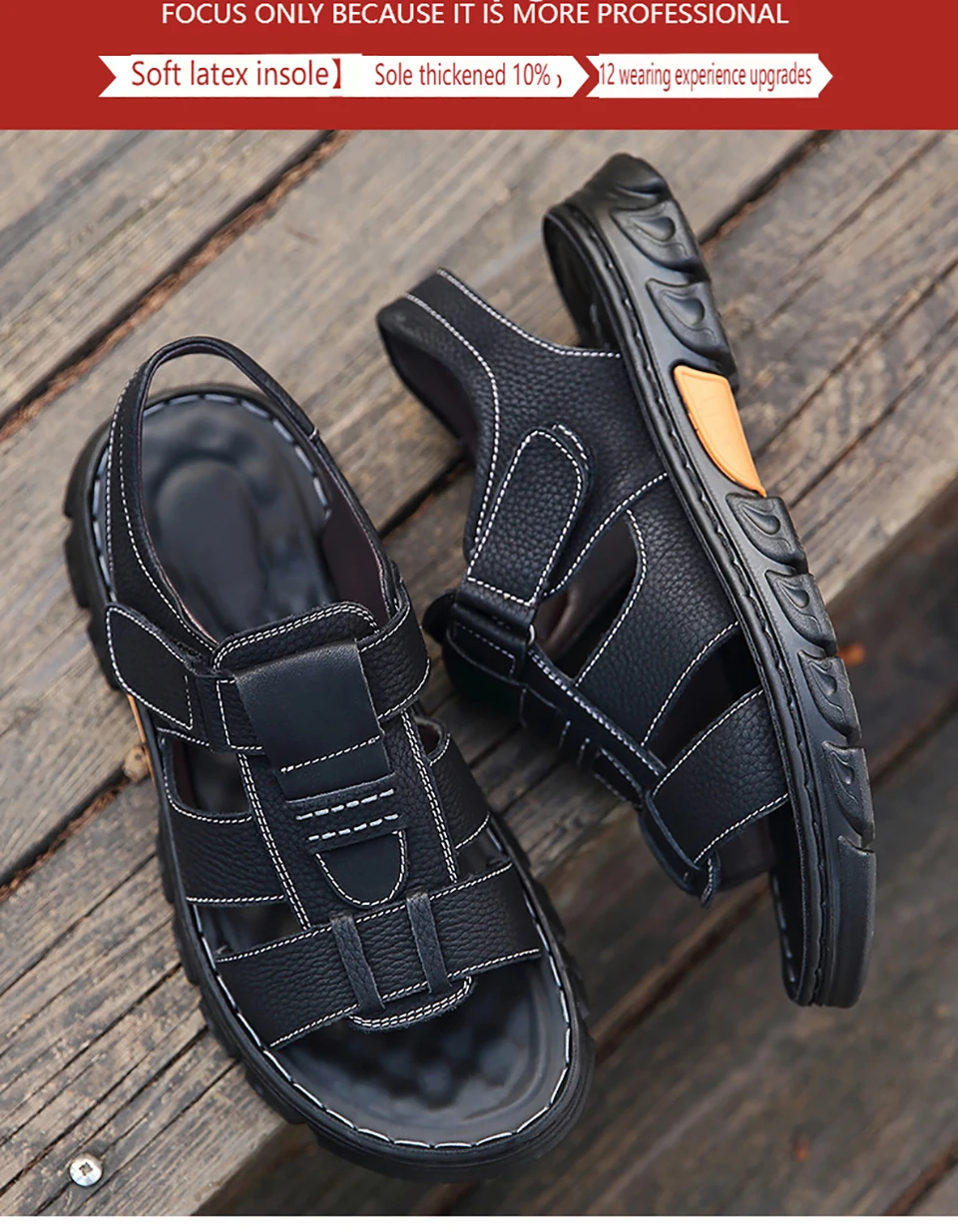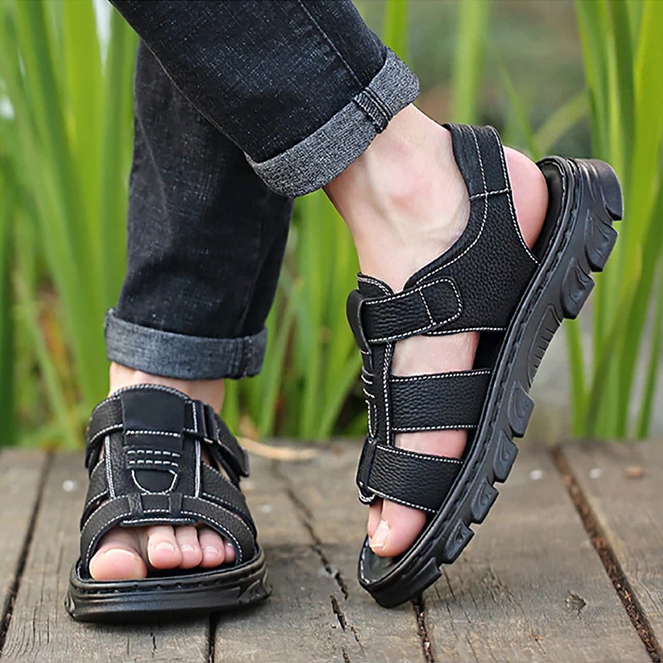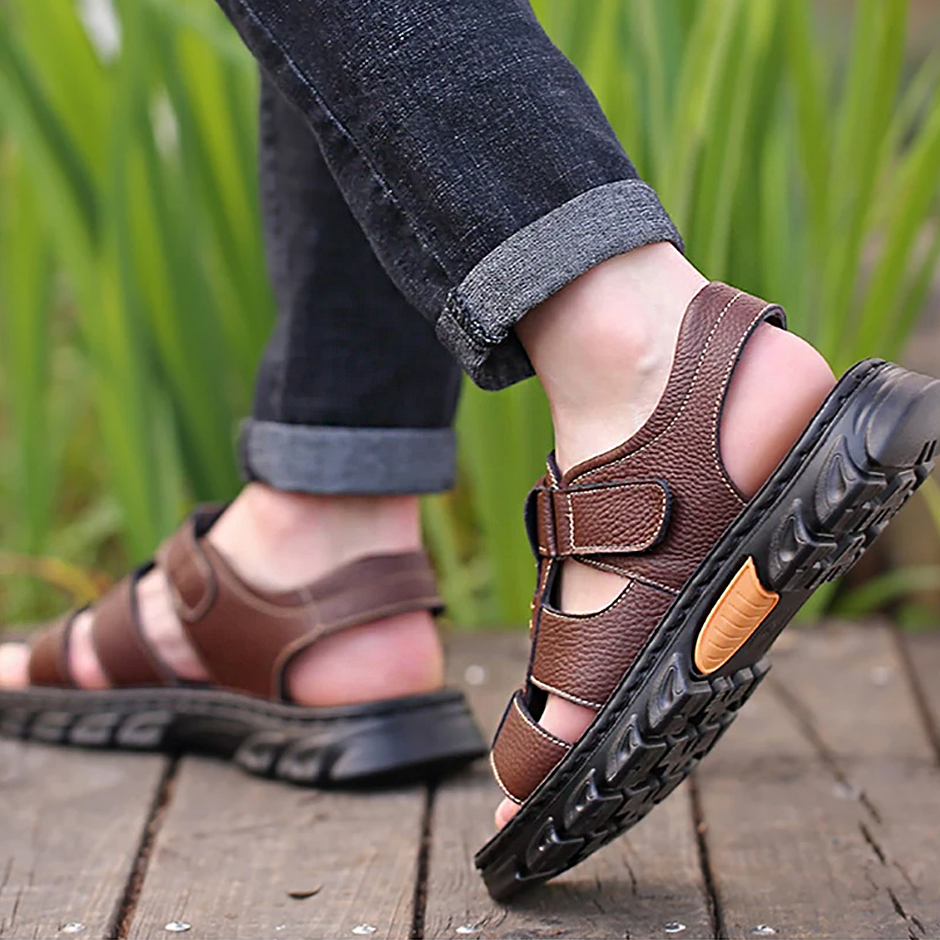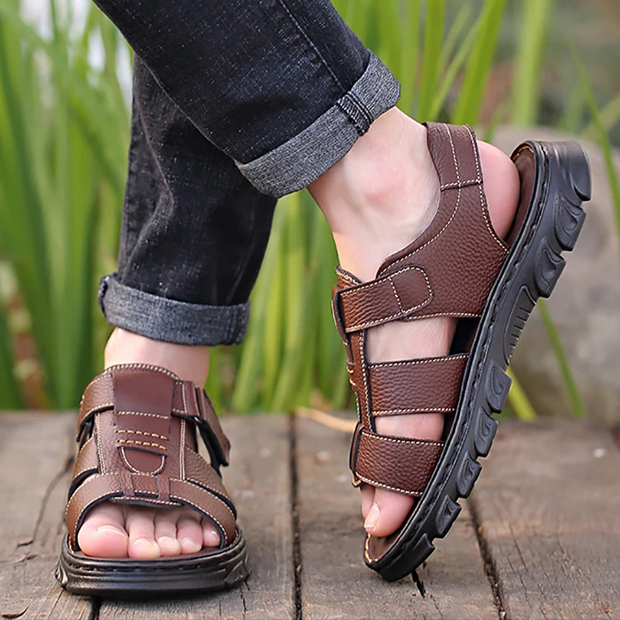 Sandals Men's Beach Shoes Cowhide Slippers Outdoor Non-slip Thick-soled Leather Sandals for Men